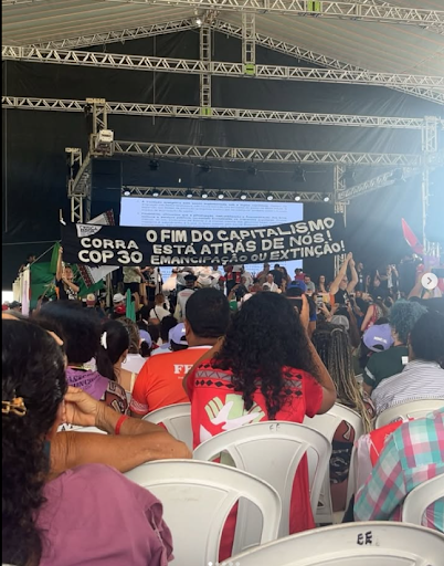 I was in Belém from November 16-21st. On our first day, we attended the People’s Summit, an event running adjacent to COP30 but open to the public. It serves as a platform for civil society to voice concerns, propose solutions, and hold governments accountable. We had the privilege of witnessing the official Declaration of the People’s Summit Toward COP30, a call for climate justice urging a paradigm shift away from capitalism and market-driven interests toward ambitious climate action, international cooperation, and people-centered transition to a green economy. This event was truly powerful. Standing among a diverse crowd, including students, activists, NGOs, and Indigenous peoples, from different backgrounds and lived experiences, I witnessed a deep sense of unity and shared commitment to environmental protection and human rights.